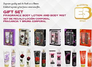 Gift box sets offer pleased to offer gift box sets Each box set comes with an 8oz body lotion, And an 8.4oz body mist. Brand Elizabeth Style Case pack - 18 Pallet holds about 30 cases Country of origin–India expiry date printed on the box sets. However, the body lotion and the body mists have the following dates printed on them: MFG - 01/2025 EXP - 12/2029 About 100 cases available per SKU as of 11/19/25 Styles can be mixed to make up the minimum order quantity requirements. Quantity:600 cases Cost:$6.05 per gift set Email id:Hajisalim@globalplayersintl.com +91 9819246785/Whatsapp Take All FOB USA NYC
