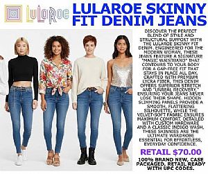 LuLaRoe Skinny Fit Denim Jeans Crafted with premium Lycra fiber, this denim offers superior stretch and "unreal recovery," ensuring your jeans never lose their shape. Hidden slimming panels provide a smooth, flattering silhouette, while the velvet-soft fabric ensures maximum comfort. Detailed with custom hardware and a classic indigo wash, these skinnies are the ultimate wardrobe essential for effortless, everyday confidence. Packaging: 100% brand new, retail-ready, with hang tags. XS (Size 24) 6,060 pairs S (Size 26) 39,494 pairs M (Size 28) 29,390 pairs L (Size 30) 19,654 pairs Quantity:94,598 units available Price:$7/Unit MOQ. Email id:Hajisalim@globalplayersintl.com +91 9819246785/Whatsapp Take All FOB USA NYC