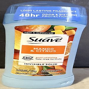 SUAVE ANTIPERSPIRANT-DEODORANT INVISIBLE SOLID MANGO & CITRUS 2.6oz UPC: 3-83711-00261-8 EXP Date: DEC 2026 Case Pack: 12 Cases Per Pallet: 294 Cases Available: 114 Quantity:1368 EACH PRICE: $2.50ea Email id:Hajisalim@globalplayersintl.com +91 9819246785/Whatsapp Take All FOB USA NYC